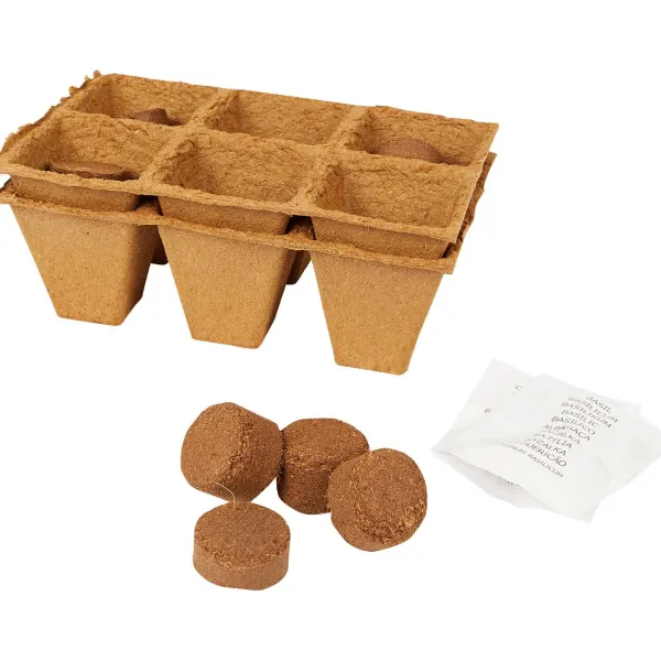 - 2X 6 Potjes Van Papierpulp Met 12 Kokosvezeldiscs En 2 Zakjes Met Groentezaden