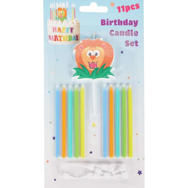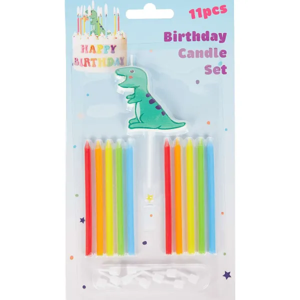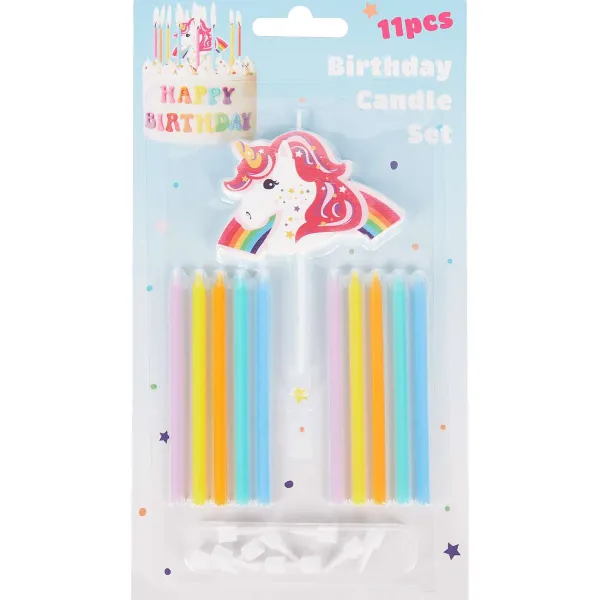 - 11 Kaarsjes In Verschillende Vrolijke Kleuren Waarvan 1 Groter Kaarsje
